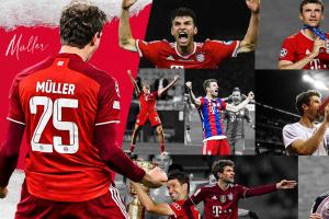穆勒在年仅10岁时就加入了拜仁,过去的25年里从未离开过,他已经代表拜仁出战了743场比赛,贡献247球和273次助攻,随队赢得了2次欧冠冠军和12次德甲冠军等共32个冠军。