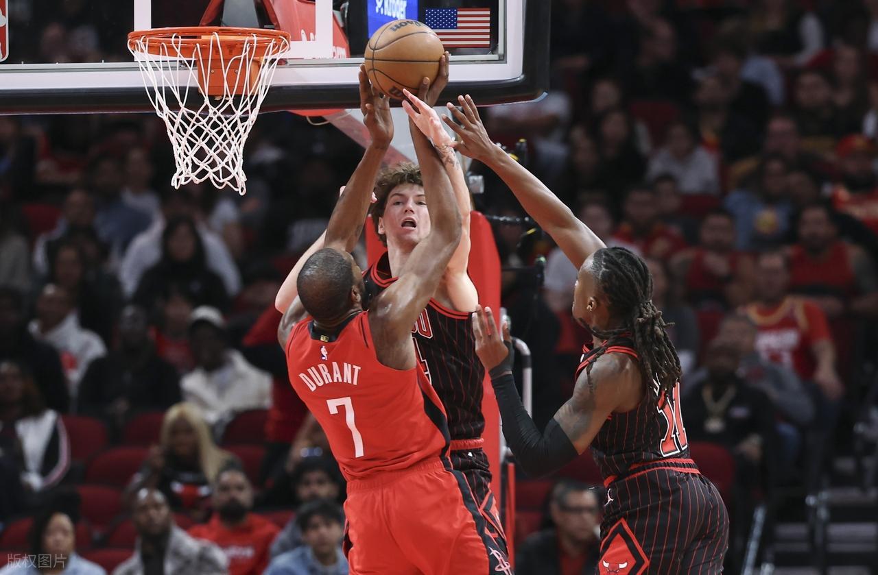 火箭先发:杜兰特、史密斯、申京、奥科吉、阿门! 公牛先发:史密斯、布泽利斯、武切维奇、奥科罗、特雷·琼斯!
